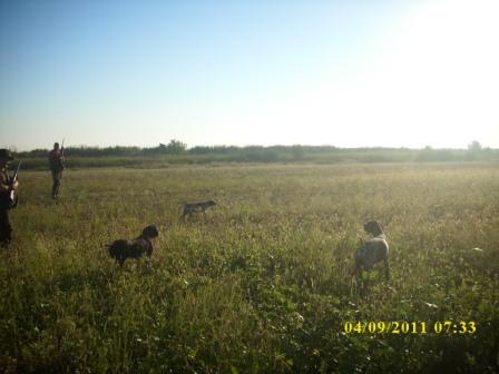Suvo jutro, skoro bez rose i promena proverenog terena nisu obećvali ništa dobro. Tako je i počelo, na velikoj tabli prve 3 duži prošetali smo uz samo jedno poletanje i odstrel, već smo se pomirili da će ovo biti loš dan. Kad odjednom na sredini table kao od niotkuda prepelice počinju da poleću, prva, druga, treća..... posle nekoliko prolaza svi su se napucali i imali koju na visku. U odnosu na prošli vikend znatno manje ali je lov ipak bio uspešan.