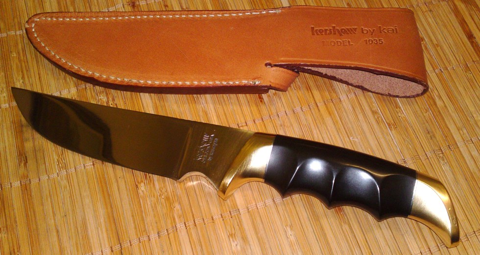 da vam predstavim jedan od vecih rariteta iz moje kolekcije KERSHAW by KAI Lovac na jelene model 1035 , ako se dobro secam kupljen krajem osamdestih i jos tad je vazio za redak i trazen jer je za to vreme nudio vrhunske performanse i odlican dizajn i ostrice i drske, s ostricom od AUS 8 celika , rucno konveksno ostrena u KAI japanu, sa drskom od kombinacije punog mesinga i fenola (materijal od kog se prave bilijarske kugle )...