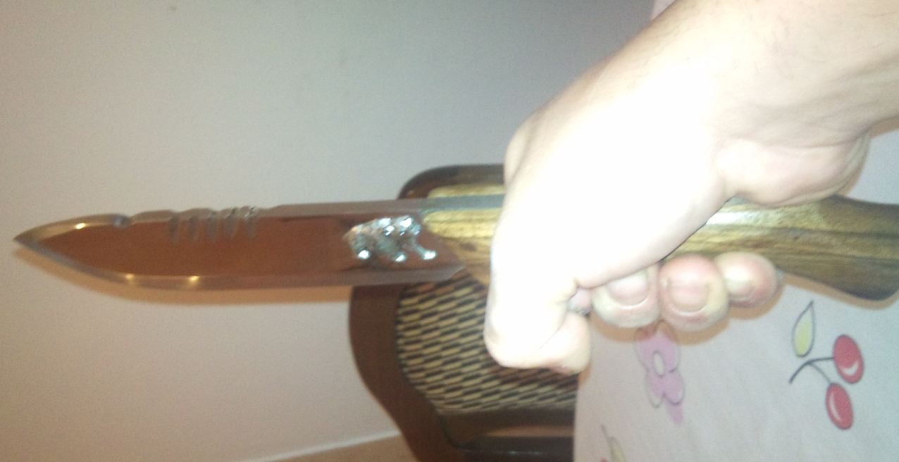 aj da majstor Kelt ponovo predstavi svoj rucni rad. ovog puta na redu je teski noz, za lov na vise dana u planini, tezak je 500 grama,a sece grane od 5cm