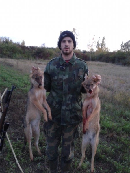 juce negde oko 18h mi na jednoj vecoj parceli sa detelinom izadju posle kraceg vabljenja tri sakala, ali ih fazan svojim kokodakanjem odvuce nazad u sumicu koja je do odmah do deteline. nastavim da vabim i posle jedno 15min.pojavljuje se jedan na rubu sumice viri iz zbuna. malo posle toga pojavljuje se jos jedan na drugi kraj sumice ali i on ne izlazi. pocnem ponovo da vabim i zvucem jos jednog koji je odmah izasao na detelinu. posle malo vremena izadje i drugi na detelinu gledaju levo,desno i pocinju da se priblizavaju jedan do drugog,njuskaju se i ujednom trenutku se poklapaju sto im je bila fatalna greska. dva sakala jednim metkom. daljina 97koraka[img][/img]