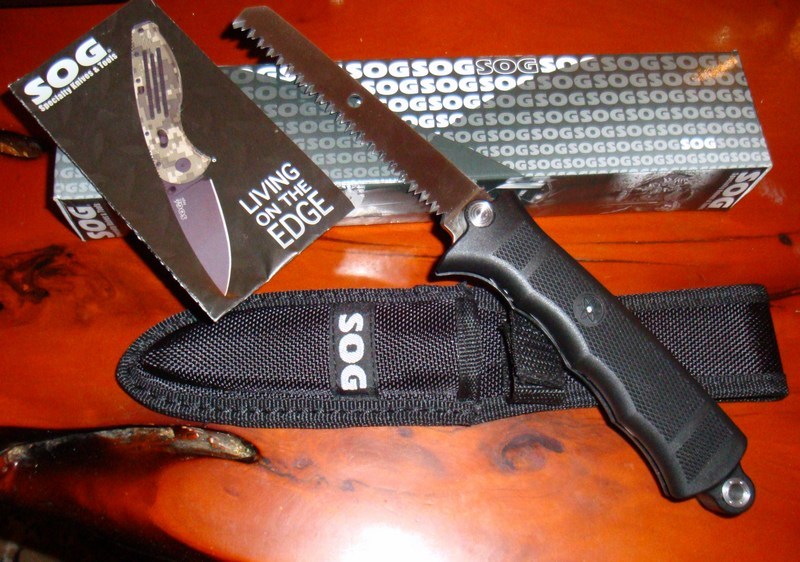i vise je neplanirana kupovina jer sam u stvari trazio Moru buskraft force , ali eto najpoznatiji predstavnik pored svedske EKA rotirajuce ostrice , s tim sto mi se SOGova konfiguracija vise svidja gde je umesto dodatne ostrice za otvaranje divljaci , ubacena vrlo upotrebljiva i velika XT testera od 440 celika kao i uostalom i secivo ( SOG radi ove modele i od AUS 8 celika koji je nesto bolji ali ne markantno )inace samo secivo je vrlo dobro osmisljeno pa ima kuku za bezbedno otvaranje divljaci , a dve krivine na ledjima za postavljane palca takodje nisu slucajno tu,na prvoj krivini je palac u idealnoj pozici za dranje,a kad je na drugoj opet je u idealjnoj za guljenje ... fabricki je liferovan kao vrlo ostar , da brije sto se kaze ...