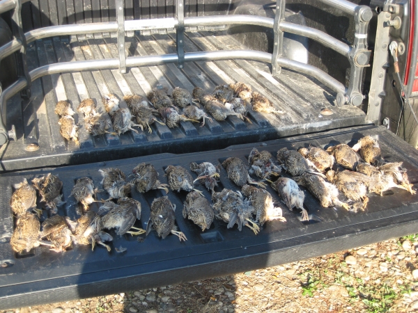 Evo i mi smo jutros otvorili sezonu,ulov dve prepelice uz jos nekoliko promasaja,brojnost ista kao i prethodnih godina,s tim sto su ove godine male i rastrkane parcele strnjika,pa smo morali prilicno veliki teren da obidjemo