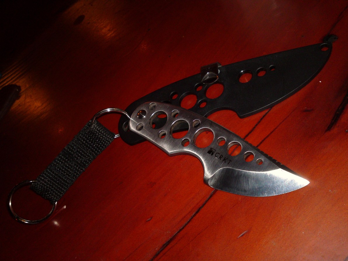Ajde da predstavim nozic koji cesto nosim sa sobom a moze da se nosi (uslovno receno) kao privezak za kljuceve ... inace firma CRTK a dizajner je Mike Franklin , i stvarno inovativan noz sa nekim novim resenjima , pogledajte slike inace koncipiran je zbog konstrukcije ostrice strikno kao noz za desnjake ... kupljen je zbog inovativnih resenja ali se pokazao i kao vrlo praktican u svakodnevnoj upotrebi , ne mogu da ga preporucim kao samostalni noz jednom lovcu ali kao sekundarni za sitne radove uvek ... inace cena mu je 28 Eura (eto Petre jos jedan u cenovnoj klasi)