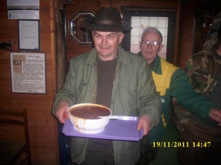 I na kraju, na lovačkom domu su domaćini spremili izvrstan paprikaš! Ja sam kao fino vaspitan čovek, pojeo jedan tanjir, ali Daki.... Evo dokaza, on nije jeo iz tanjira, nego iz činije!!!