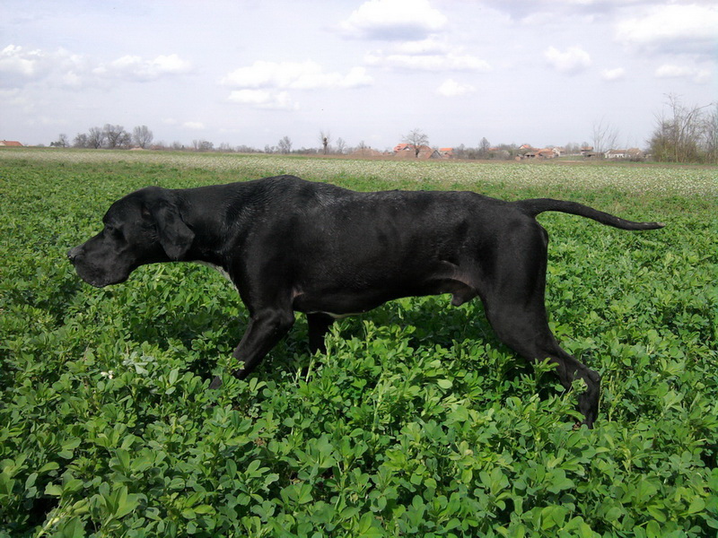 Kerovi su ekstra i od azanje i od Ostrovca... jedno pitanje za strucnjake ... mozda mi se cini da je kod ovog crnog njuska izduzenija nego kod ovog ostrovcevog pa bi pitao.. dal se ceni inace kod poentera vise kad je njuska izduzenija ili kraca? POzz druze kao i kod svih pasa isto i kod poentera,glava se ocenjuje u odnosu na sveukupnu gradju psa,ciniti se da je njuska mog poentera kraca u odnosu na svoju visinu ima odlicnu glavu,na slici se nikada ne moze dati konacna ocena jer svaki ugao slikanja moze da prosiri ili suzi neki detalj na slici,da bi se dala konacna ocena u eksterijeru dva psa moraju jadan protiv drugog u ring,i po oceni sudeje dobijaju ko je sta zasluzio,!tako da njuska mora odgovarati glavi psa,ne sme biti ni prevelika ni premala,..!! |