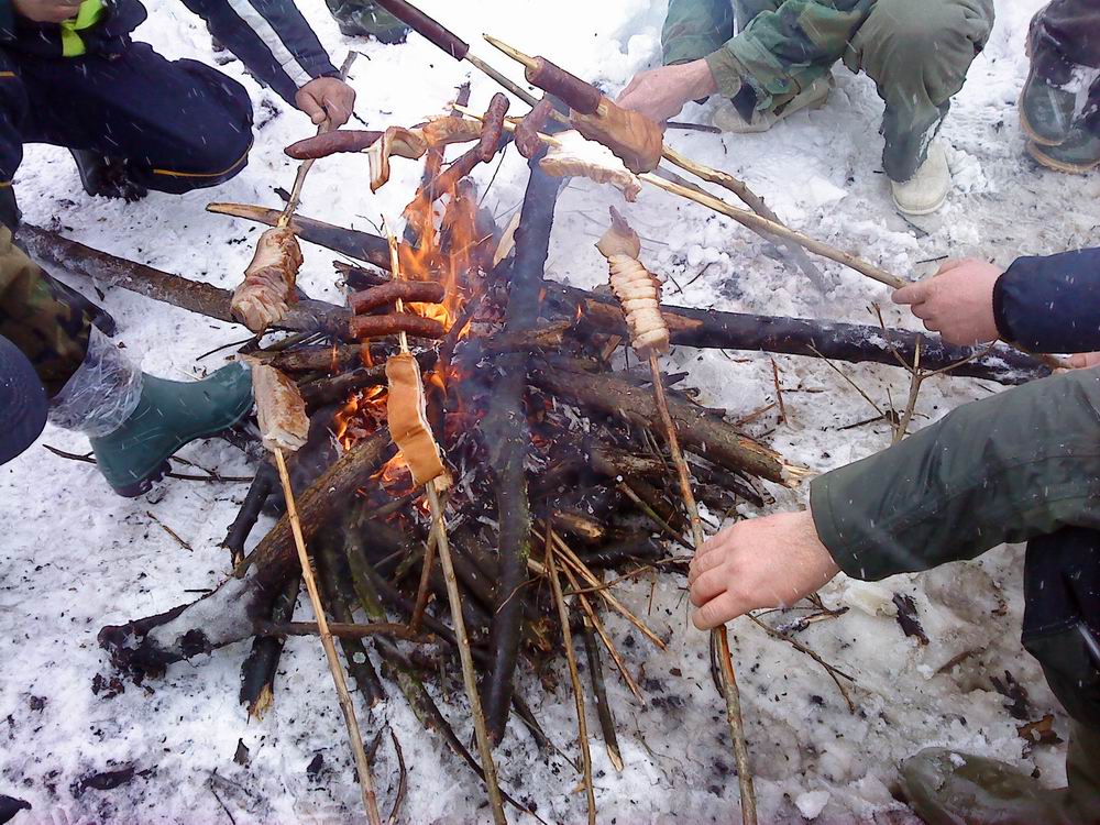 Zbog velikog snega odlučismo da ipak lovimo ali i da ponesemo u potes so i hranu za divljač. U rančeve, torbe, džakove ... pa ko koliko može ... i takoi bijade!