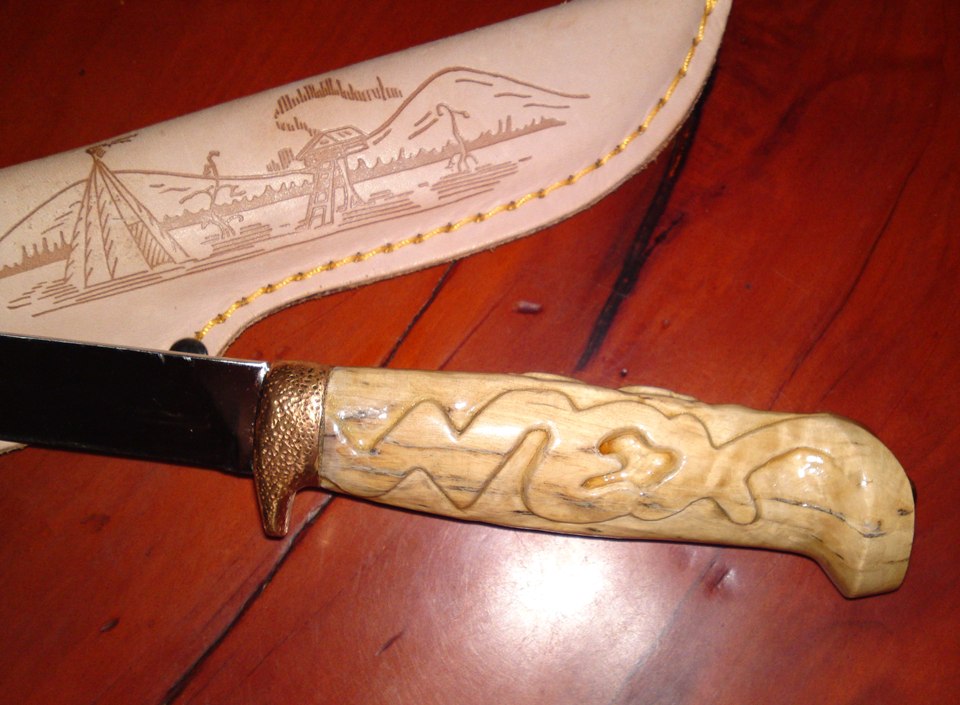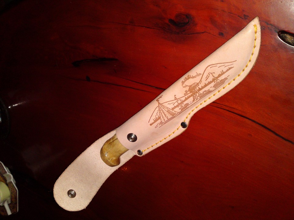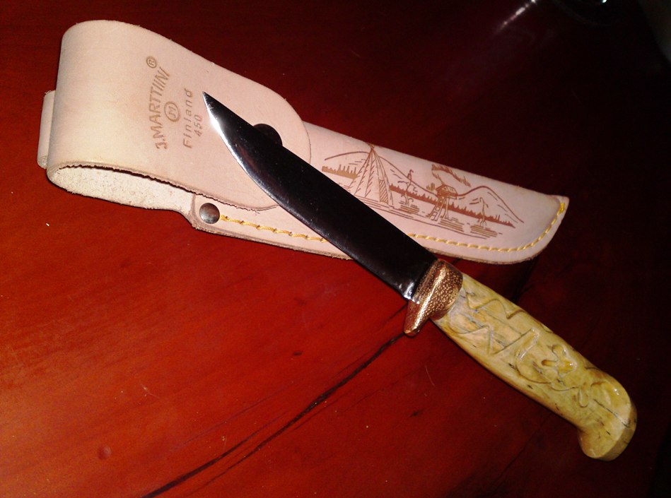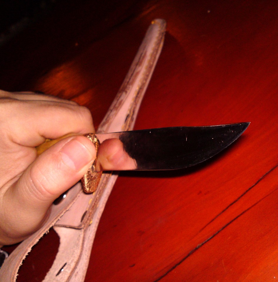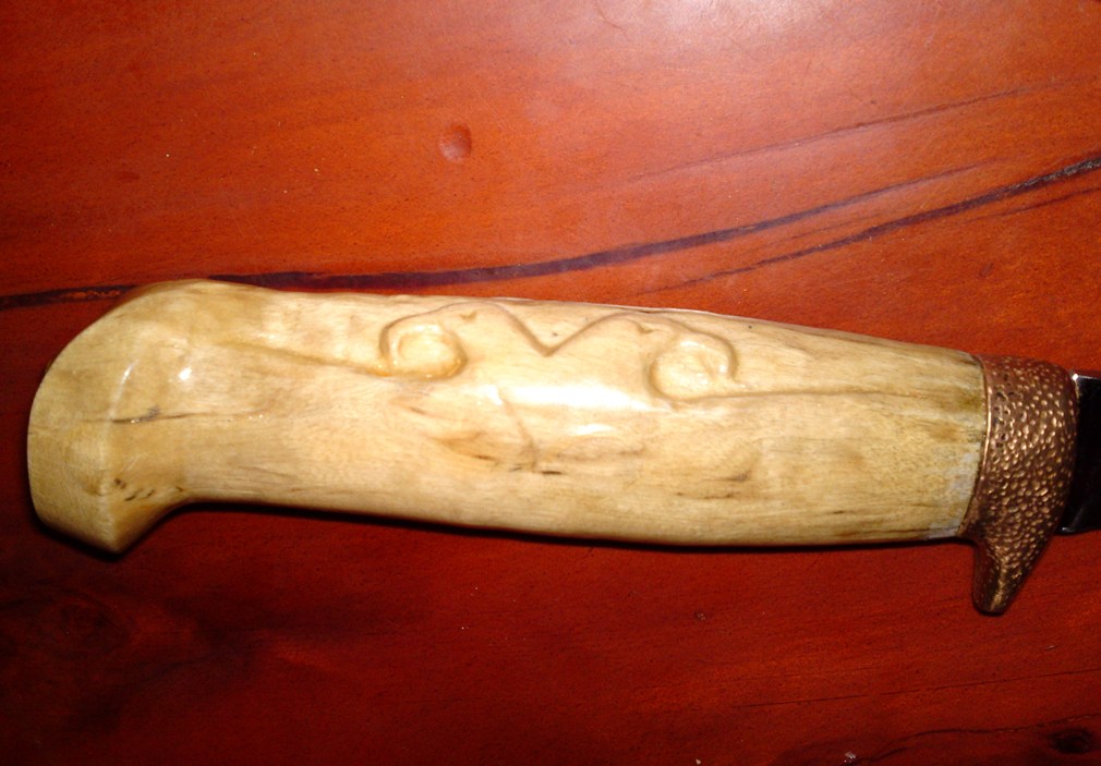 e dok brojim glasove , da prijavim da sam konacno sredio mog finca koji me posteno i udarnicki sluzi vec vise od 15 godina , pa se od ribanja drska izoljustila i pocela da puca i deo kod balcaka je bio malo upao zbog rada vise manje nezasticenog drveta ali to bi bilo uglavnom sve ;) sam noz i ostrica su bili cvrsti kao prvog dana ... drsku je gravirala moja malenkost , a s druge strane su stilizovane glave srpskih orlova , pa je iso nitro ucvrscivac,pa zaliven u klar lak za drvo ... ostrica je pretrpela najvise najvise izmena pa je odradjena sa skandinavskog na konveksni a vrh je spusten prema osi .. dobio je novu (staru) futrolu posto sam ga dugo nosio u jednoj slucajno pasend kordura futroli ... inace ova sad ima unutrasnju plasticnu kaniju , a i poklopac sa drukerom tako da je bezbedan za bilo kakav nacin transporta ili nosenja ... izvinjavam se na 6 slika (ali nisam znao koju da izbacim :-))
